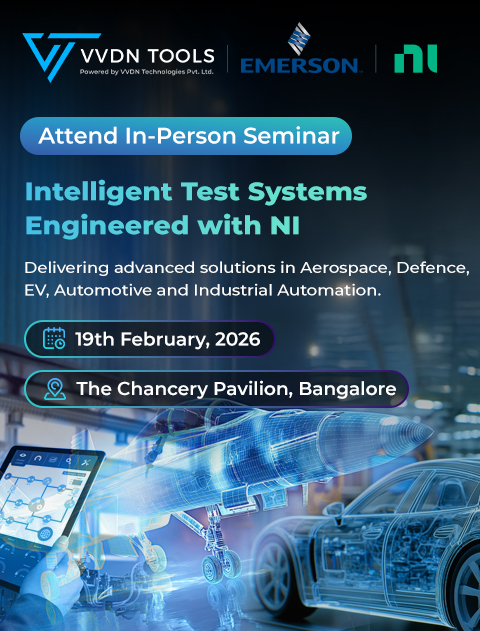 Join us for a one-day immersive session as VVDN Technologies, in collaboration with NI (National Instruments), brings you a comprehensive walkthrough of modern, scalable and intelligent test systems. Explore how these solutions enable high-performance validation, automation, and measurement across industries such as Aerospace & Defence, Automotive, EV and Industrial Automation.